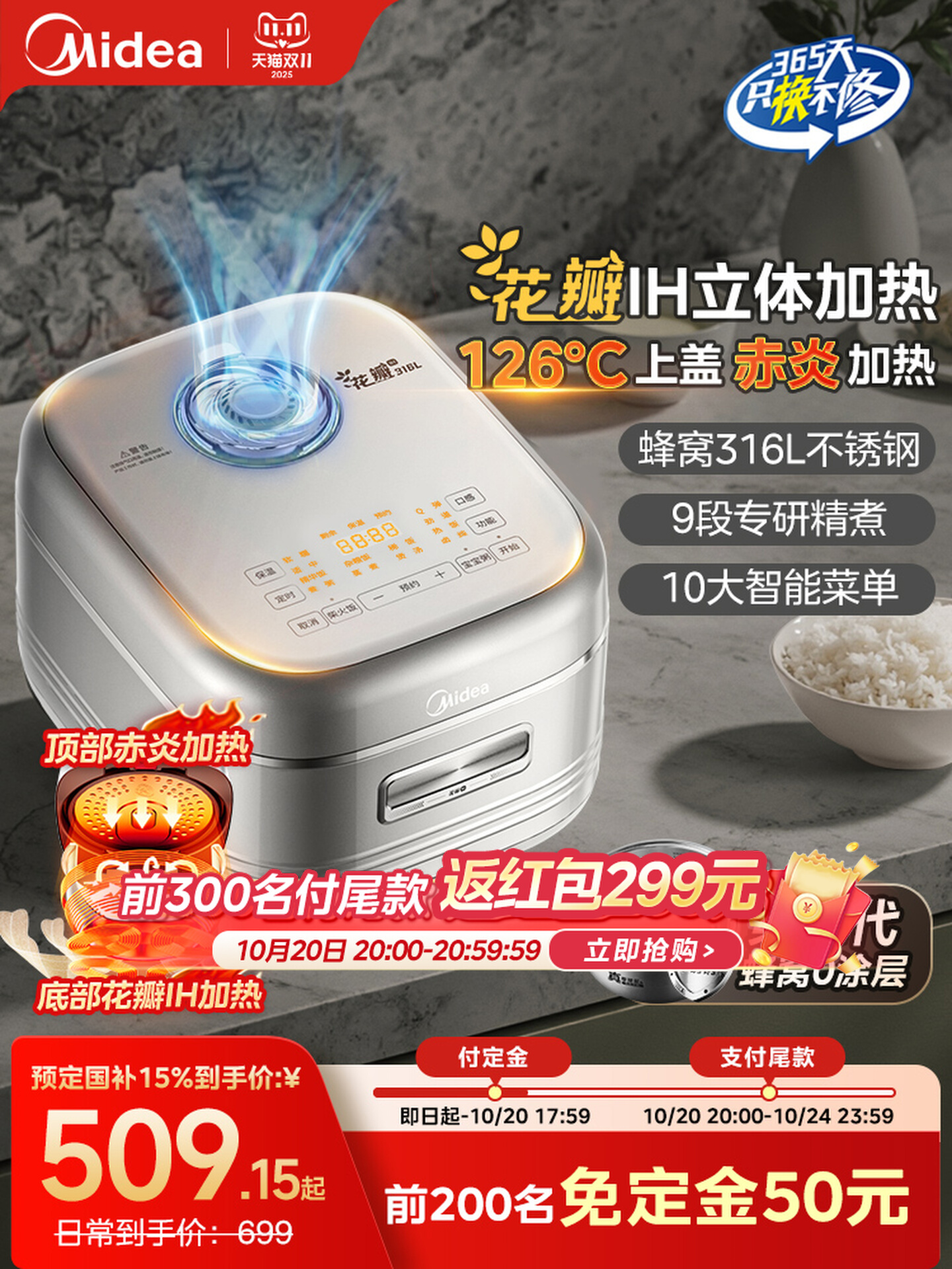 美的花瓣IH电饭煲家用316L不锈钢0涂层内胆新款多功能电饭锅3-4人