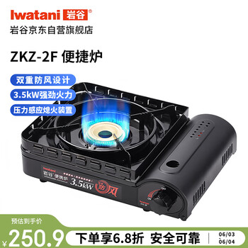 岩谷户外双重防风卡式炉便携炉露营3.5kW强劲火力ZKZ-2F限定款黑色