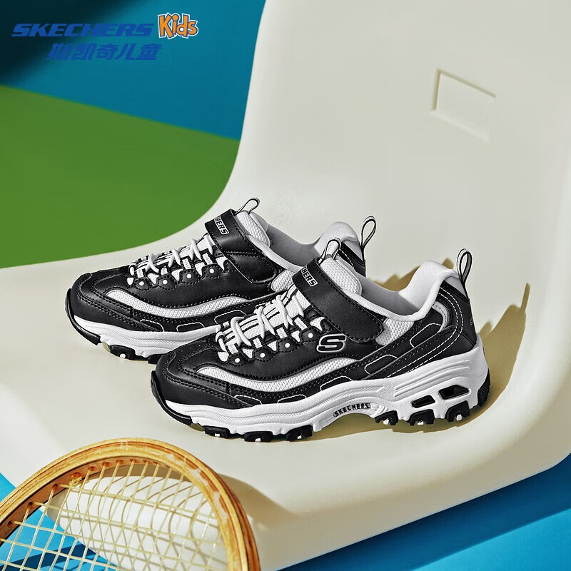 斯凯奇童鞋经典熊猫鞋老爹鞋儿童运动鞋秋休闲女童鞋664060L BKW黑色/白色 37