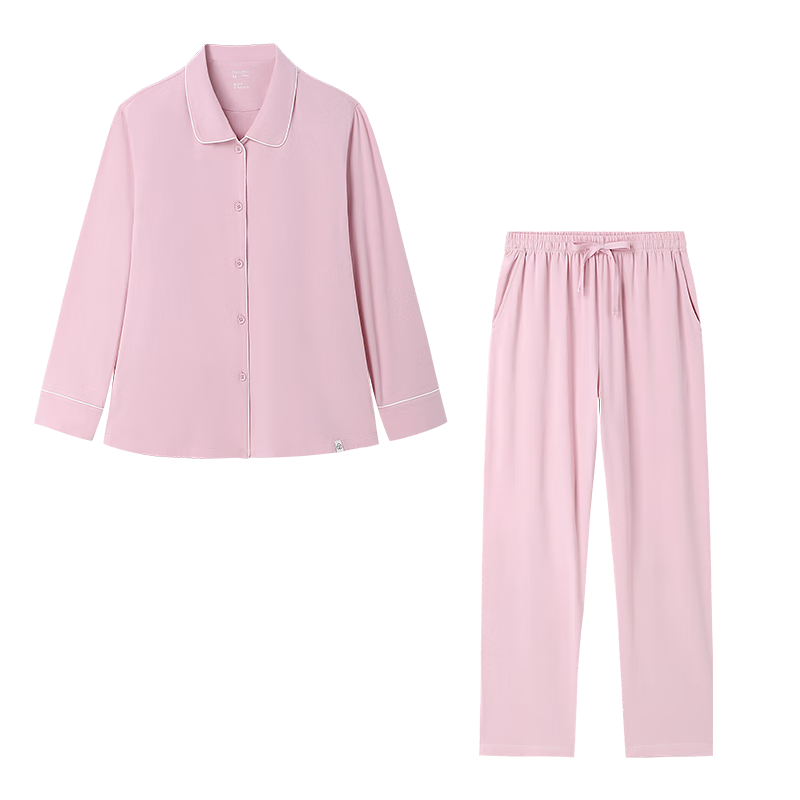全棉时代睡衣女长袖长裤情侣家居服套装针织 杏桃粉 L