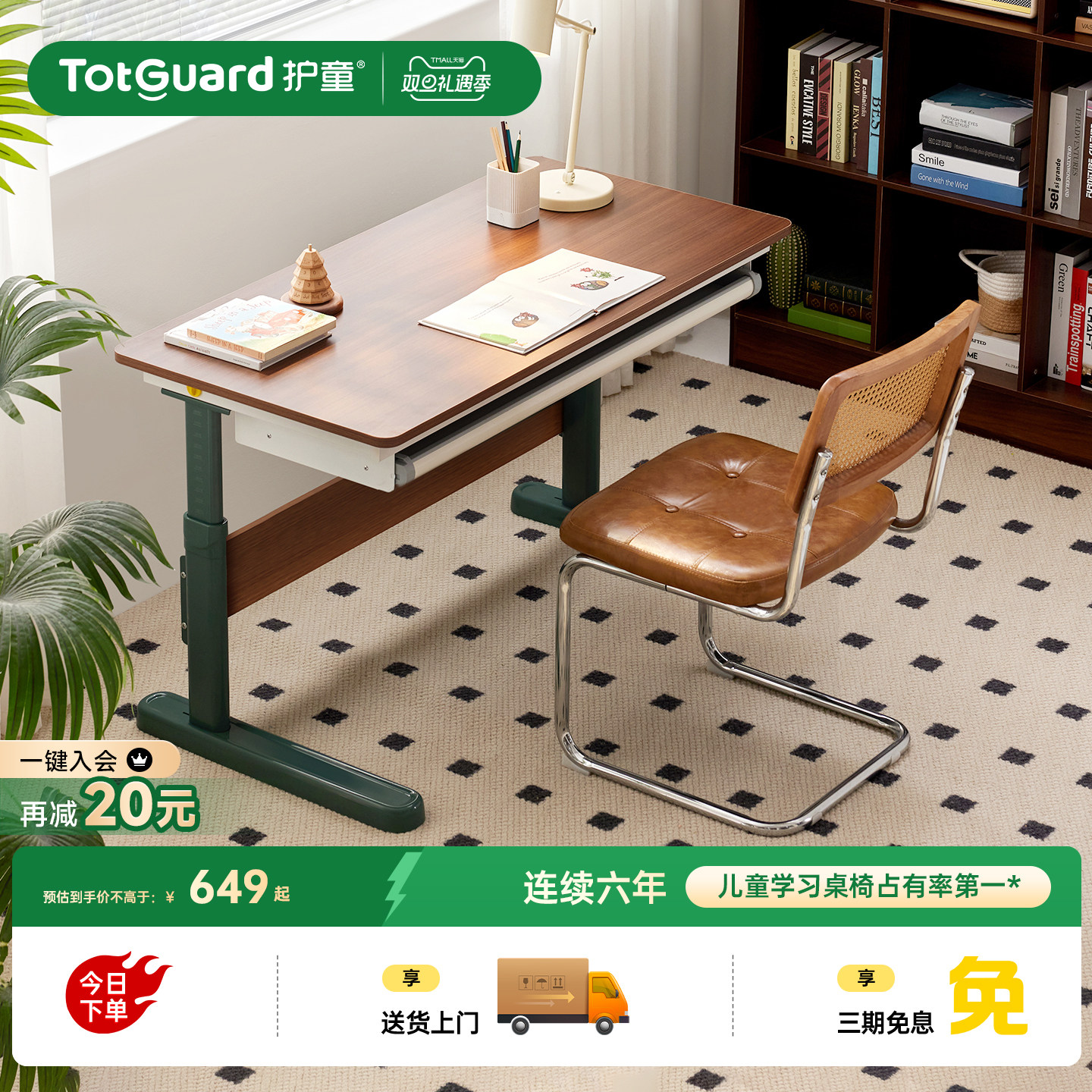 护童儿童学习桌小学生书桌可升降家用简约平面写字桌办公桌子
