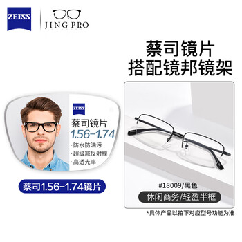 蔡司眼镜近视男超轻男女同款大脸不夹钛架男配防蓝光眼镜带散光度数Z 18009黑色 商务半框通勤百搭 配蔡司旗下视特耐1.67超薄非球面