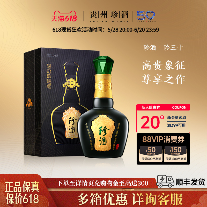【顺丰速发】贵州珍酒·珍三十53度坤沙酱香型白酒500ml收藏送礼