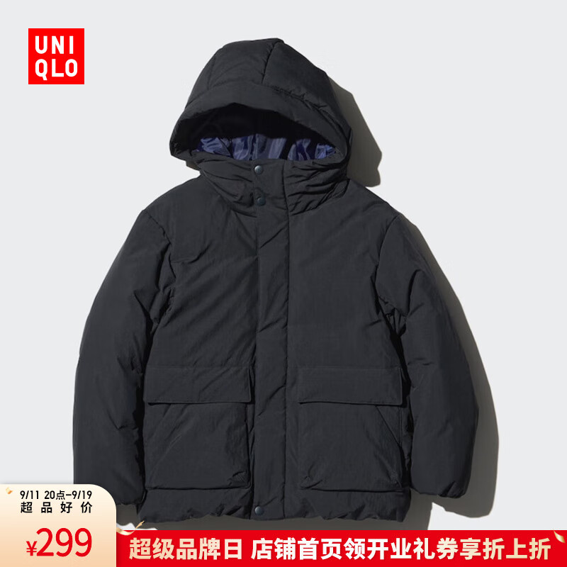 优衣库【超品好价】童装男童女童高性能复合连帽外套/保暖厚473309 09 黑色 150 150cm