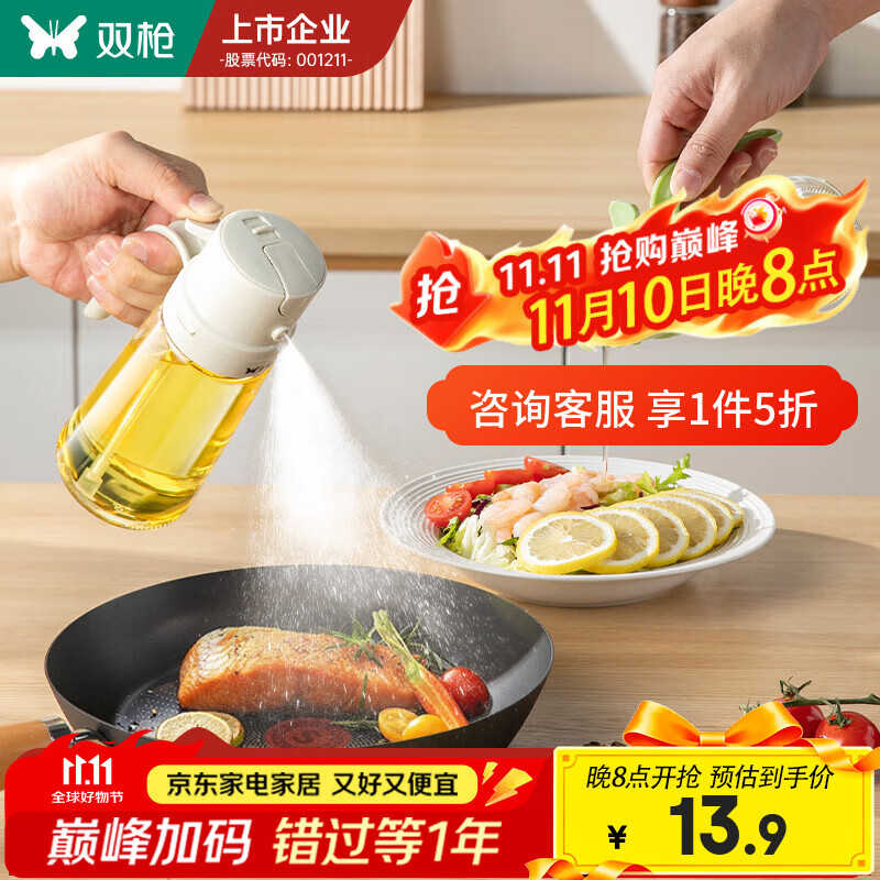 双枪喷倒两用油壶家用厨房玻璃食品级酱油醋调料瓶雾化喷油壶油瓶 【多功能三合一】象牙白470ml