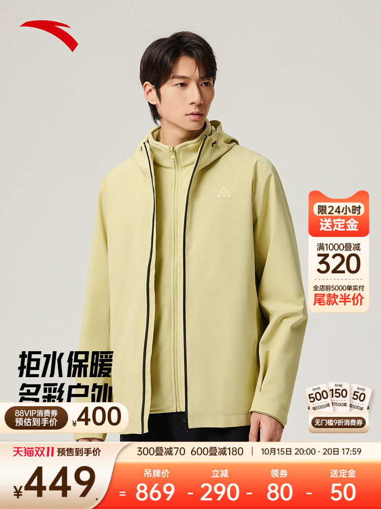 安踏水壳3.0三合一冲锋衣丨户外蓝色冲锋衣男防风防水夹克登山服