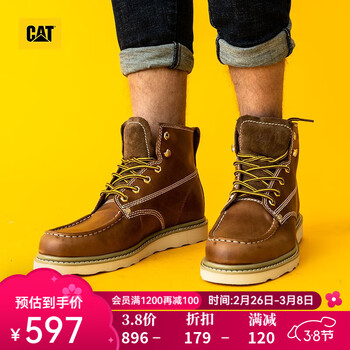 CAT卡特马丁靴工装靴子男鞋牛皮户外美式复古机车靴P721411M3EDC36 棕黄P721411 44
