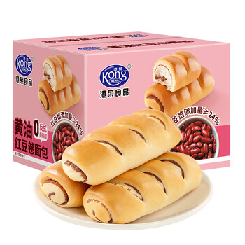 港荣红豆面包手撕整箱早餐食品休闲零食小吃点心办公室小吃抗饿糕点 红豆卷面包450g*2 面包