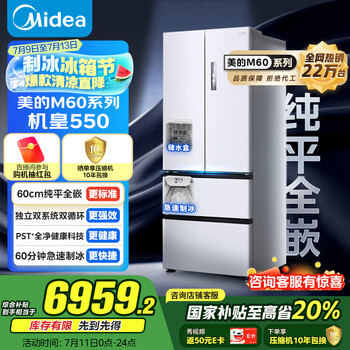 美的(Midea)M60机皇550法式多门超薄纯平全嵌一级除菌净味大容量家用制冰冰箱双系统MR-550WUFIPZE国家补贴