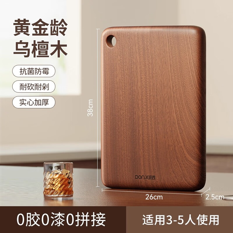 咚西乌檀木整木切菜板南非进口实木抗菌防霉双面案板厨具砧板大号耐砍 【乌檀木整木】38*26*2.5cm(适用3-5人)