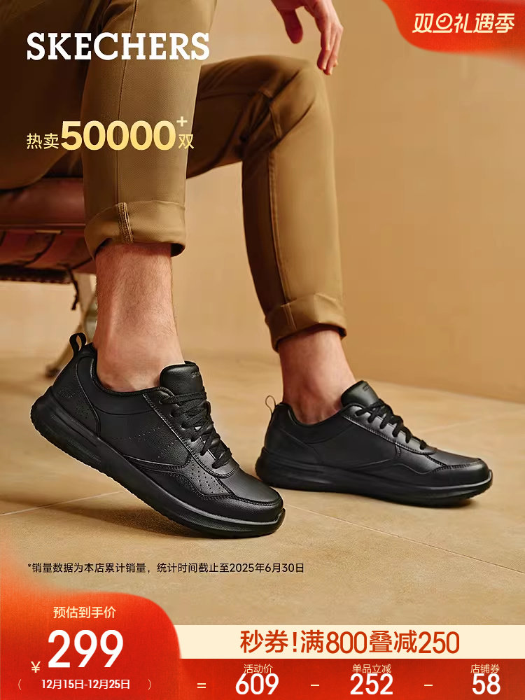斯凯奇秋冬新款男子舒适休闲皮鞋商务鞋通勤鞋德比鞋软底上班板鞋