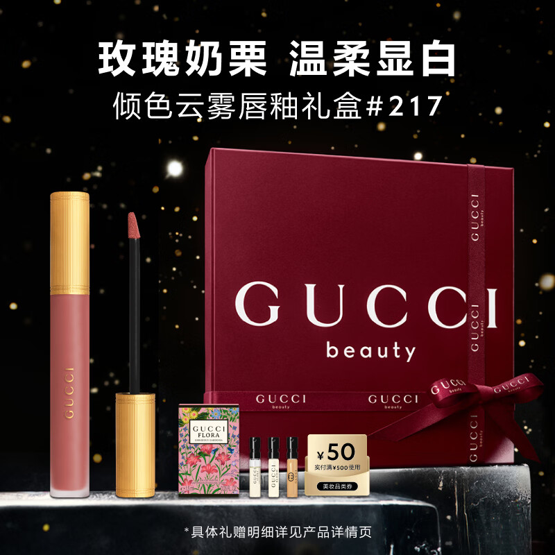 古驰(GUCCI)倾色云雾唇釉口红217玫瑰奶栗色柔雾哑光生日礼物送女友