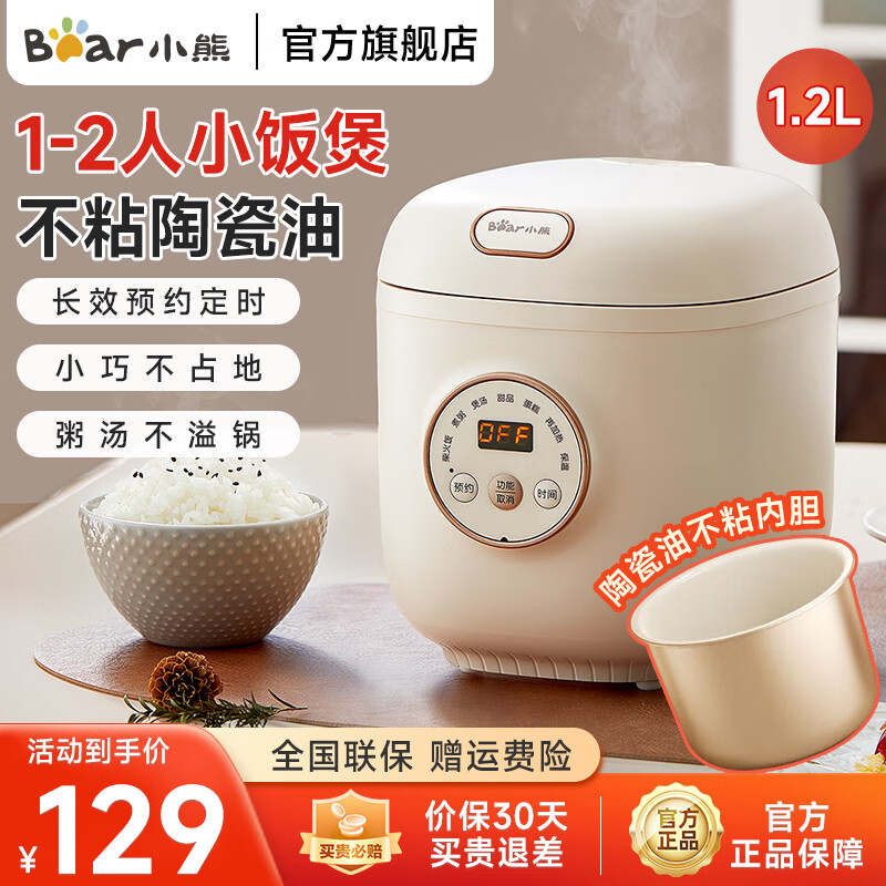 小熊(Bear)电饭煲1-2人精巧1.2L迷你小容量电饭锅一人食家用宿舍多功能压力快煮饭锅智能预约煲汤煮粥米饭锅 【陶瓷油涂层不粘内胆】 1.2L DFB-C12L9