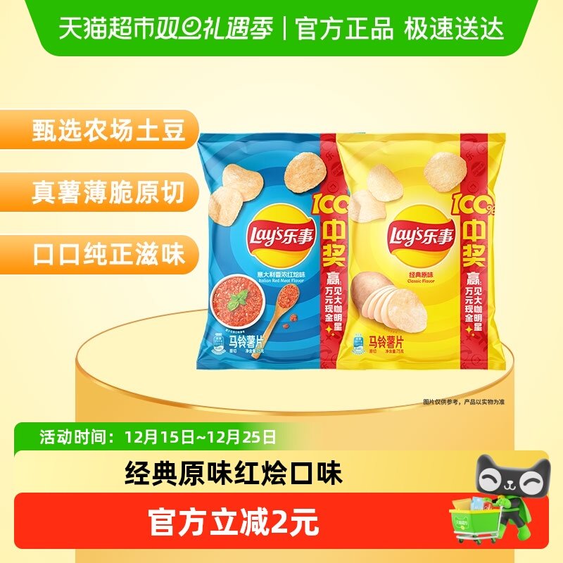 【王鹤棣推荐】Lay’s/乐事薯片(原味+红烩味)75g×2包零食小吃