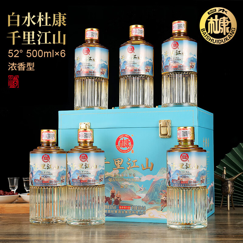 白水杜康(BAISHUIDUKANG)千里江山浓香型纯粮固态法白酒礼盒装礼赠佳品 52度 500mL 6瓶 皮箱