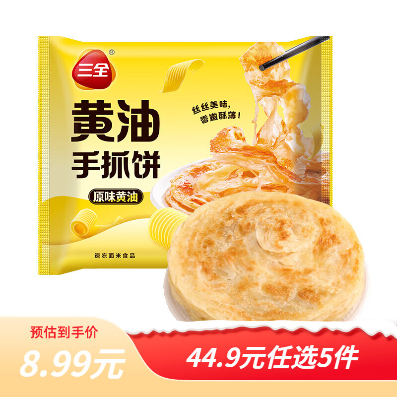 三全手抓饼面皮 葱油饼 黑椒牛肉馅饼 速冻 速食食品 早餐半成品 原味黄油手抓饼 320g