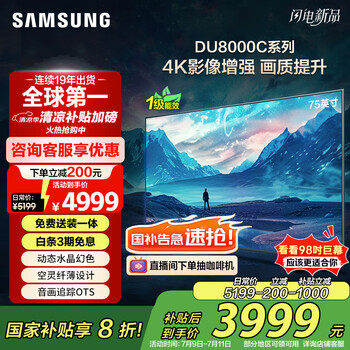 三星(SAMSUNG)75DU8000C 75英寸 平板液晶AI电视 超薄4K AI智能补帧 无开机广告 UA75DU8000CXXZ【金晨推荐】