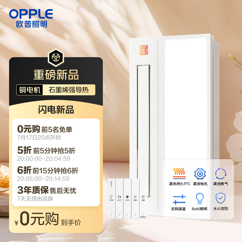 欧普(OPPLE)抱抱暖风暖浴霸灯浴室卫生间暖风照明排气一体集成 YB-JLFK103-J