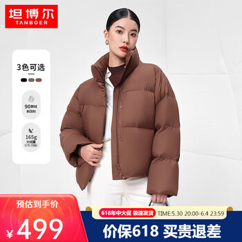 坦博尔【品质鹅绒】羽绒服女宽松鹅绒服外套女短款TW236362 黑糖咖啡 S 160/84A