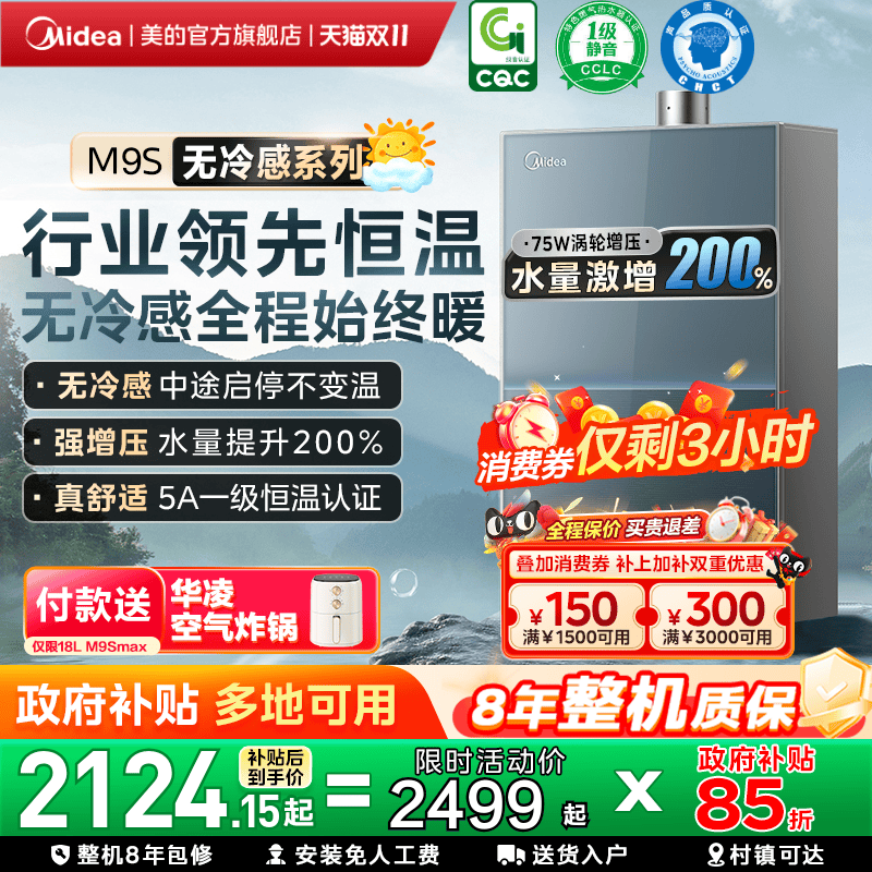 美的无冷感M9Smax燃气热水器家用天然气16升增压可选零冷水恒温