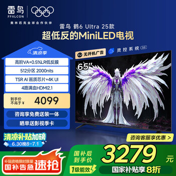 TCL雷鸟鹤6 Ultra 25款65英寸MiniLED家电国家补贴TSR AI画质芯片一级能效智能电视机65S595C Ultra-A