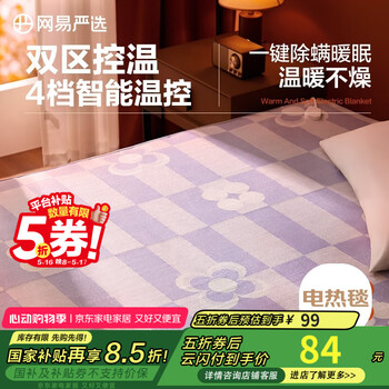 网易严选电热毯电褥子双人双区双控四档除螨安全可折叠自动断电紫色2*1.8m