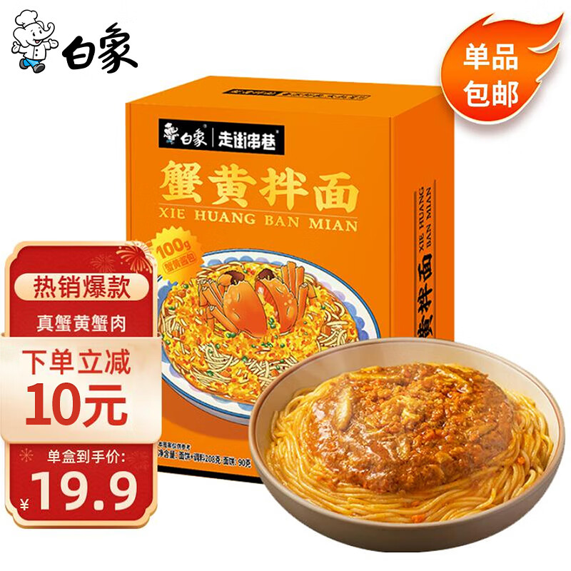 白象 走街串巷 蟹黄拌面208g/盒煮面泡面非油炸方便面