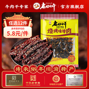 老四川(laosichuan)【系列任选12件】多口味五香麻辣牛肉干 中华老字号 休闲零食特产 烧烤牛肉60g 金角老四川牛肉干/踏青露营户外