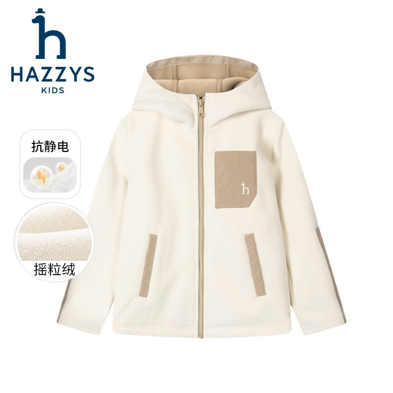 哈吉斯(HAZZYS)品牌童装男女童外套秋新品防静电舒适柔软摇粒绒针织外套 米白色 145