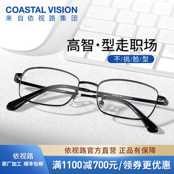 依视路(ESSILOR) 钻晶系列高清耐磨防蓝光近视超薄镜片专业配度数眼镜架男女镜框 金属-全框-2054BK-黑色 镜框+依视路膜御防蓝光1.56现片