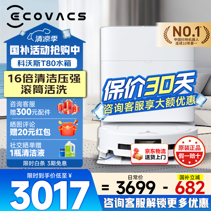 科沃斯【官方正品假一赔十】T80扫地机器人恒压滚筒活洗洗地机自动清洗智能大家用扫拖一体扫地机器人 T80水箱版【新店正品保障,咨询客服领红包】