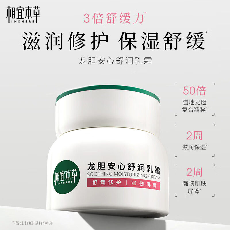 相宜本草龙胆安心舒润乳霜50g 修护舒缓干敏面霜【效期26年9月】