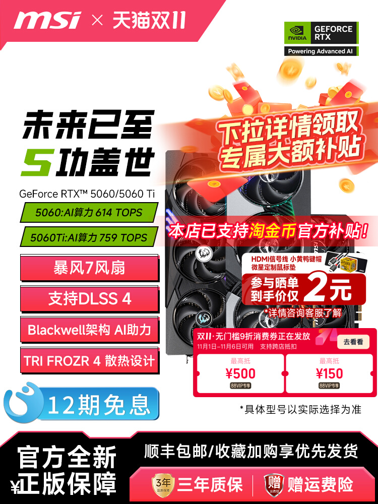 MSI/微星RTX5060/5060Ti魔龙万图师幻影师电竞游戏直播设计显卡