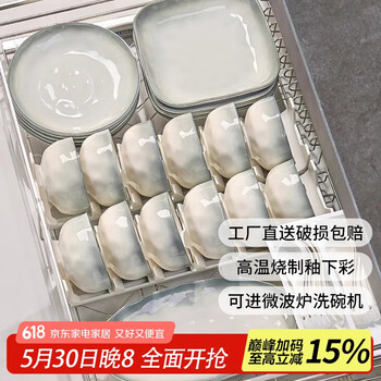 佩尔森高级感碗碟套装家用2025新款简约碗盘乔迁碗盘陶瓷釉下彩餐具整套 4人食19件套【配汤碗】