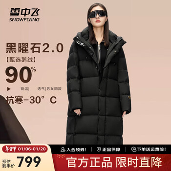 雪中飞【黑曜石2.0】秋冬新款男女同款情侣长款鹅绒羽绒服加厚抗寒 宝石黑|8086 175/96A