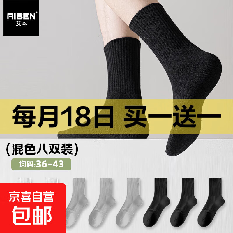【斯凯奇供应商】热卖男款袜子中筒袜秋季款运动袜黑白灰厂家促销 【015】黑白灰 8双 均码 36-43