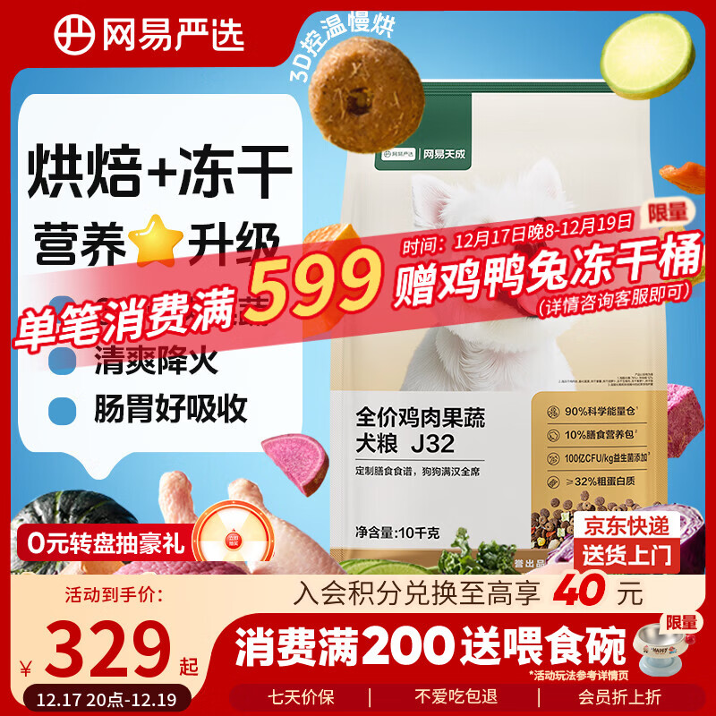 网易严选J32全价犬粮 冻干烘焙七拼鸡肉果蔬狗粮 10kg