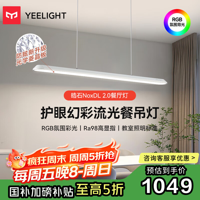 Yeelight易来智能LED护眼幻彩流光餐厅吊灯客厅吊灯一字长条灯