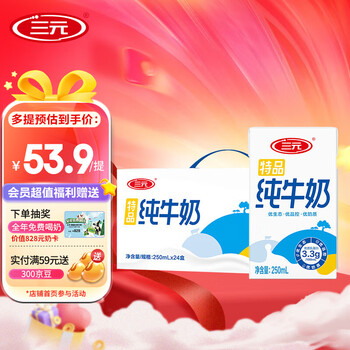 三元(SAN YUAN) 特品纯牛奶250ml*24盒蛋白质3.3g送礼礼盒整箱团购