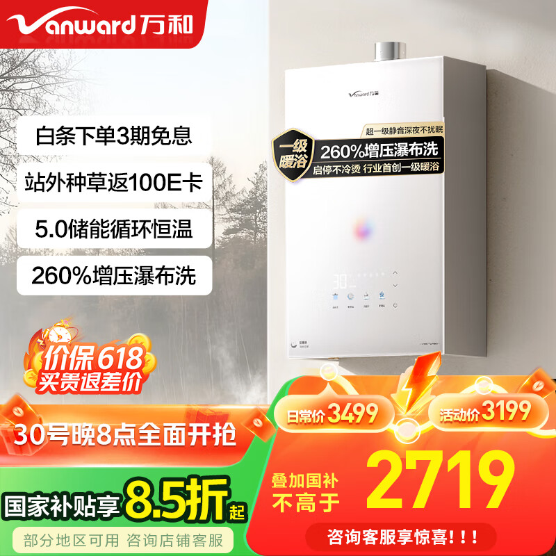 万和【安睡洗V9S系列】一级暖浴启停不冷烫一级节能静音增压瀑布洗16升燃气热水器下置变频风机 【一级暖浴增压款】V9S TURBO
