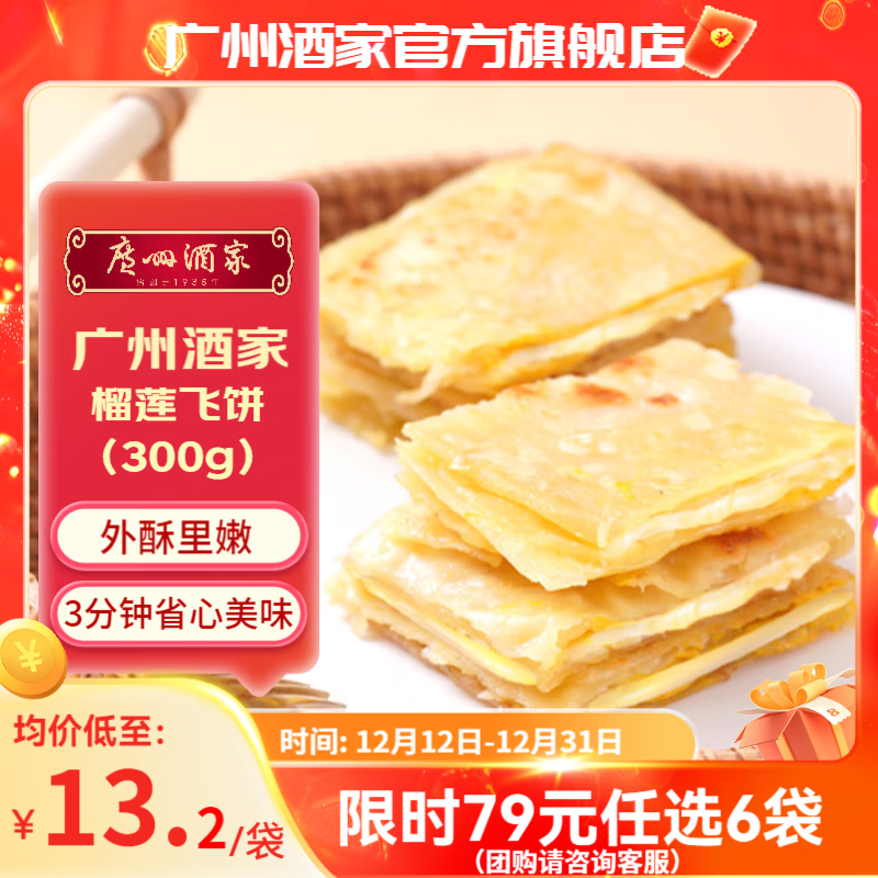 广州酒家早餐食品儿童面点 手抓饼包子饺子馒头烧麦虾饺 半成品生鲜速食 榴莲飞饼300g(3个装)