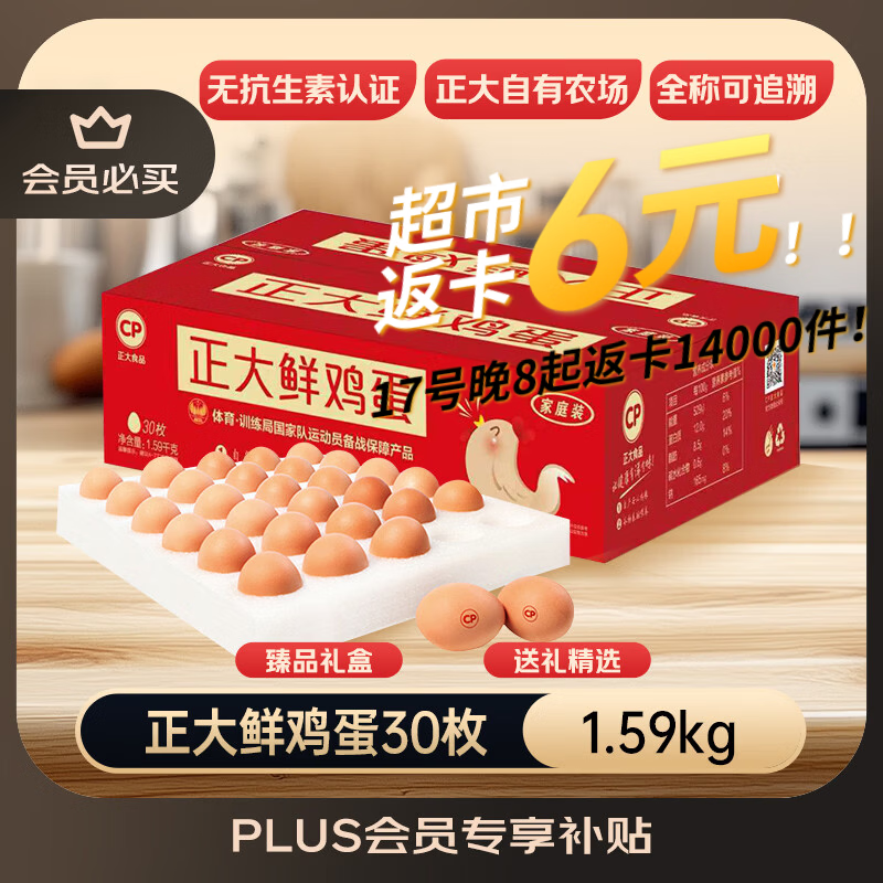 正大食品(CP)鲜鸡蛋礼盒装30枚 Plus联名款 3.18斤 源头直发