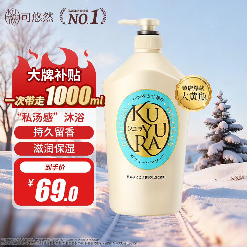 可悠然沐浴露大黄瓶香味持久美肌香氛沐浴液男女通用 沐浴液1000ml
