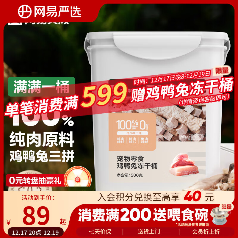 网易严选京东专供 冻干桶鸡鸭兔肉100%纯肉成幼猫狗通用 护肤靓毛 500g
