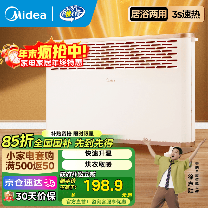 美的(Midea) 取暖器欧式快热炉家用暖风机立式小型电暖气居浴两用速热电暖器 【均匀升温】
