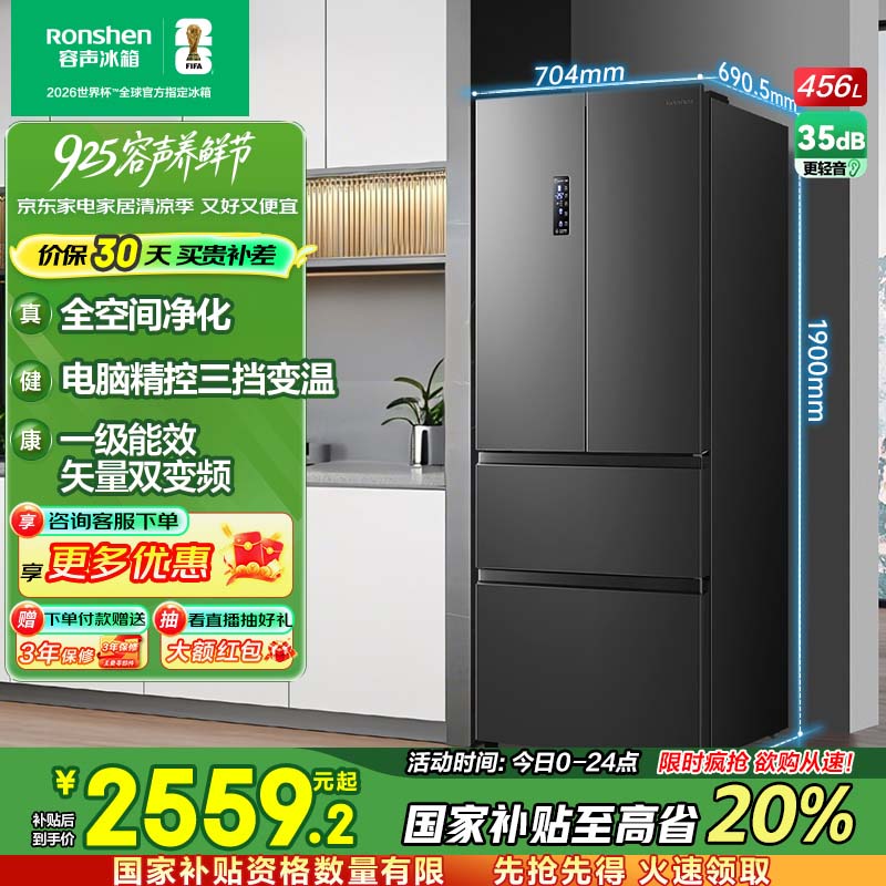 容声456升法式多门四开门电冰箱家用一级能效风冷无霜变频节能大容量超薄国家补贴20% BCD-456WD18MP