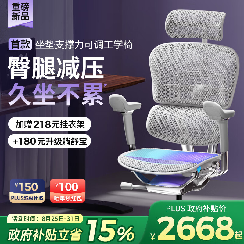 Ergonor【重磅新品】保友金豪E2 Pro 旗舰人体工学椅 办公椅电脑椅电竞椅 银白美国网