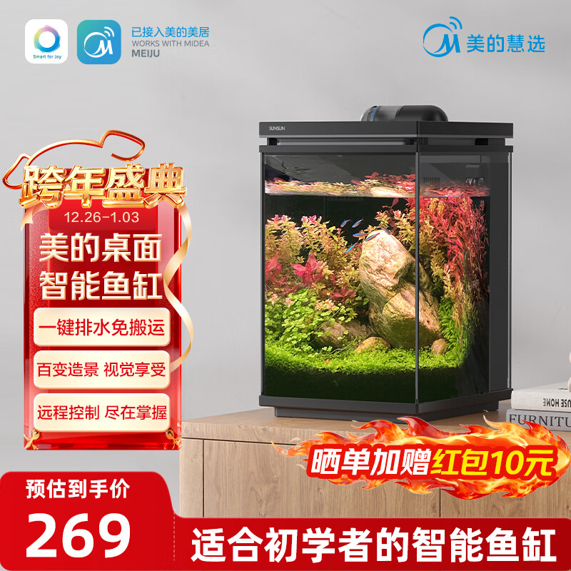 美的慧选智能生态桌面鱼缸家用自循环智能托管定时定量科学喂养