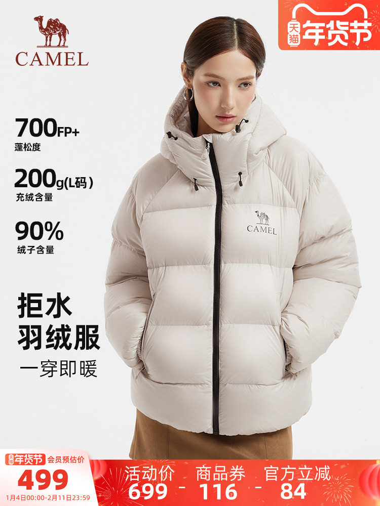骆驼黑钻5PRO女装泡芙羽绒服短款冬季新款加厚保暖连帽羽绒面包服