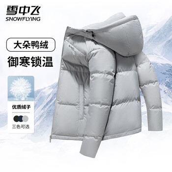 雪中飞男士羽绒服连帽冬季加厚休闲运动百搭轻户外短款羽绒衣保暖外套男 灰色|8159 XL (180/96A)